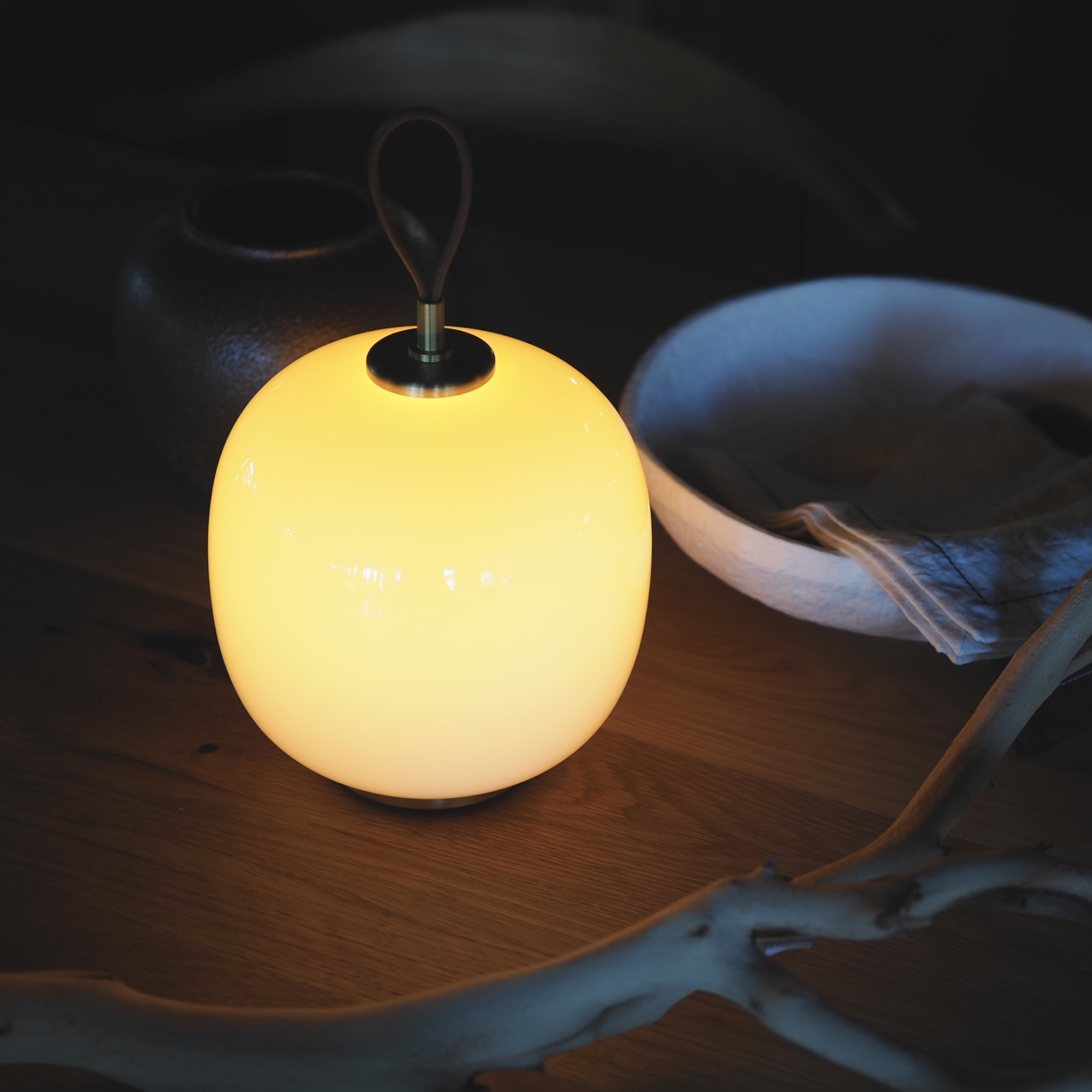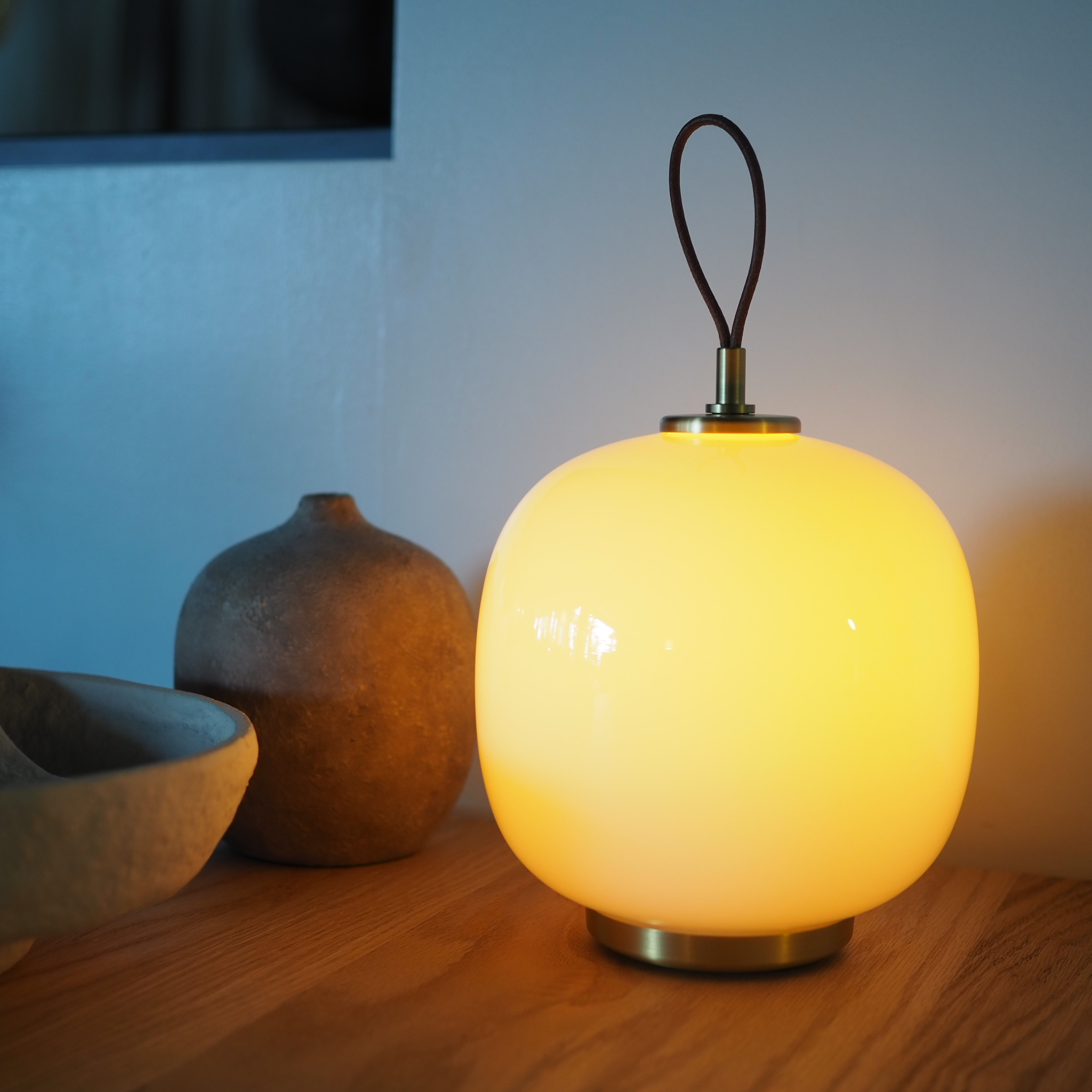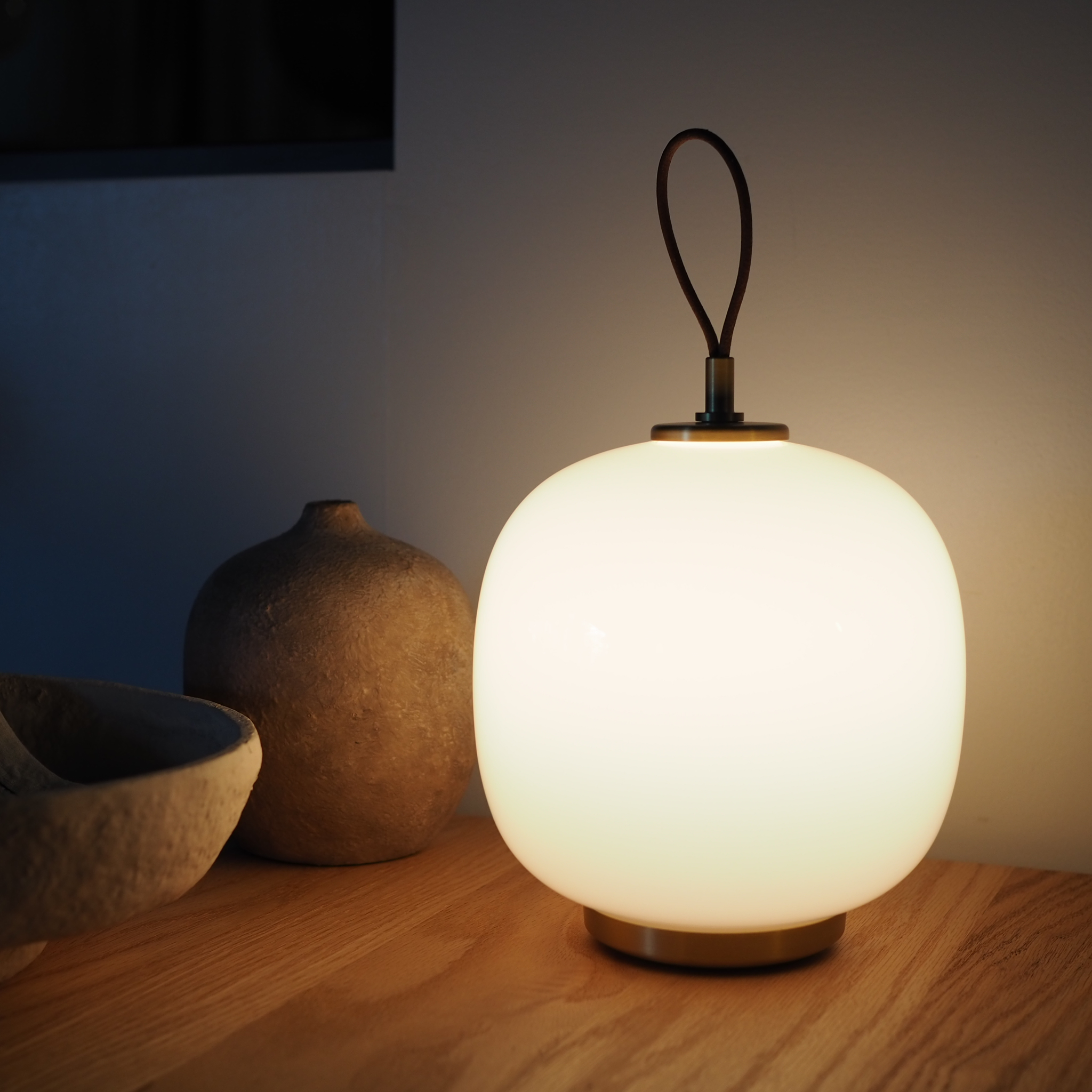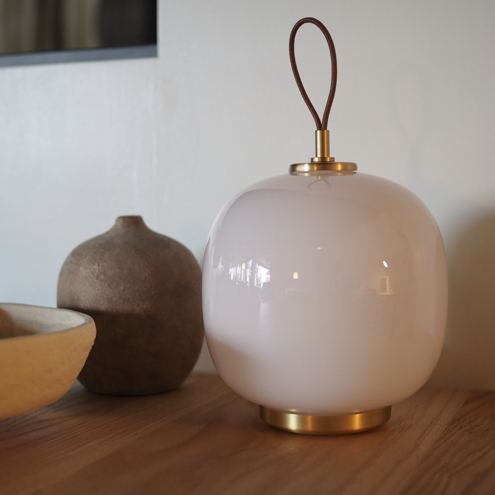 2025年の新作、ポータブルランプは【ペールローズ】色を展示中。