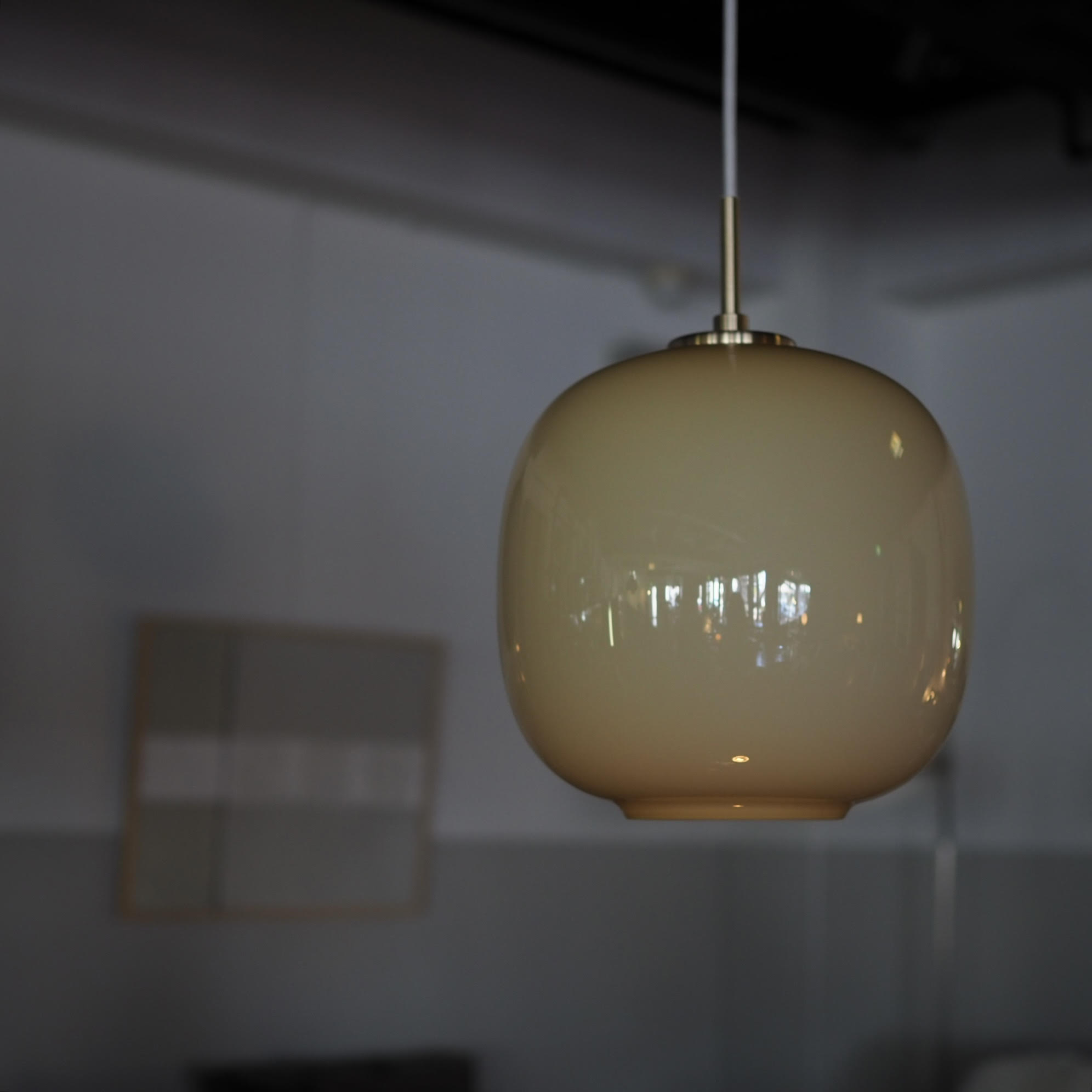 建物と調和しやすいシンプルなデザインでありながら、真鍮やガラスの素材感や絶妙な形(まんまるではない)