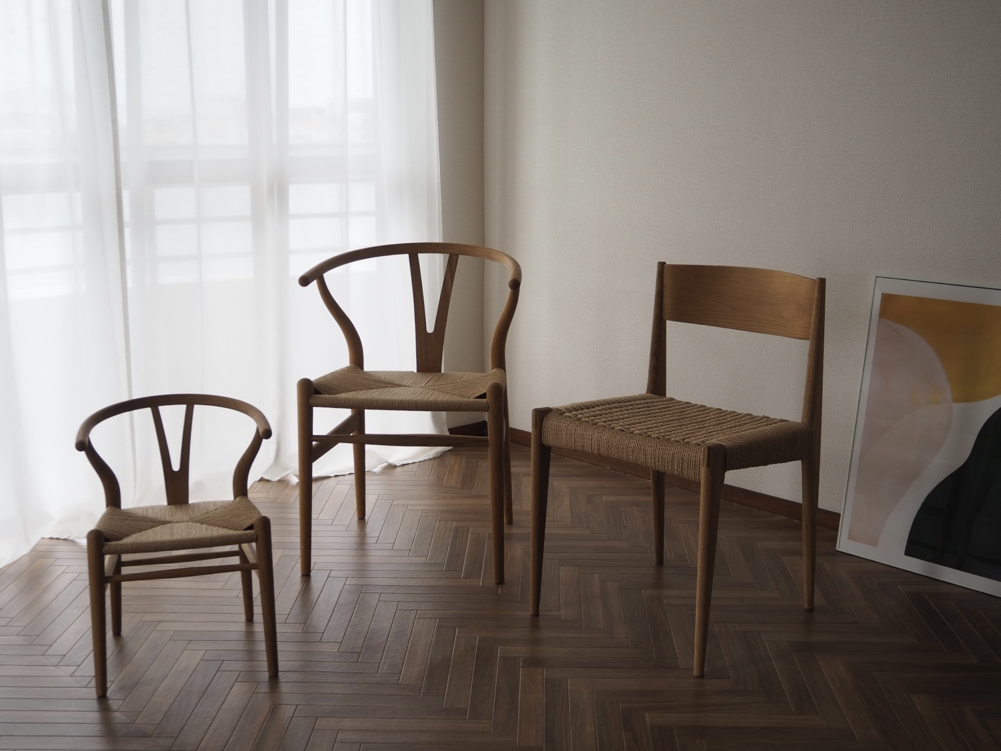 チェアは、北欧の名作CH24チェアとご家族での撮影シーンも考え、ウェグナー生誕110周年記念モデルのチルドレンサイズをお選びいただきました。