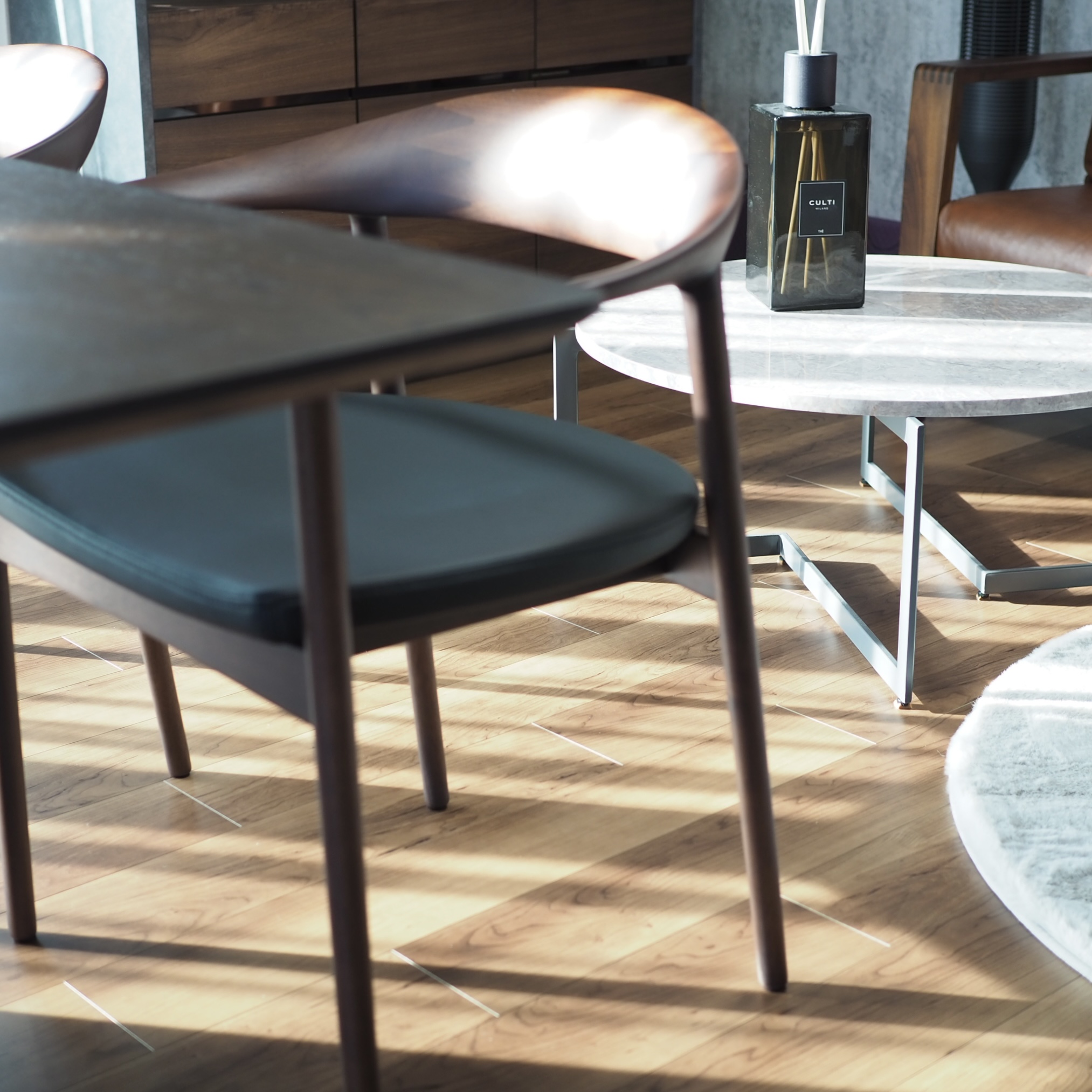 TECTAのチェアはマーティン・ハースによるバウハウスデザインの流れをくむ建築的なデザインが特徴。スチールのレッグが軽快で、アートのような佇まいです。