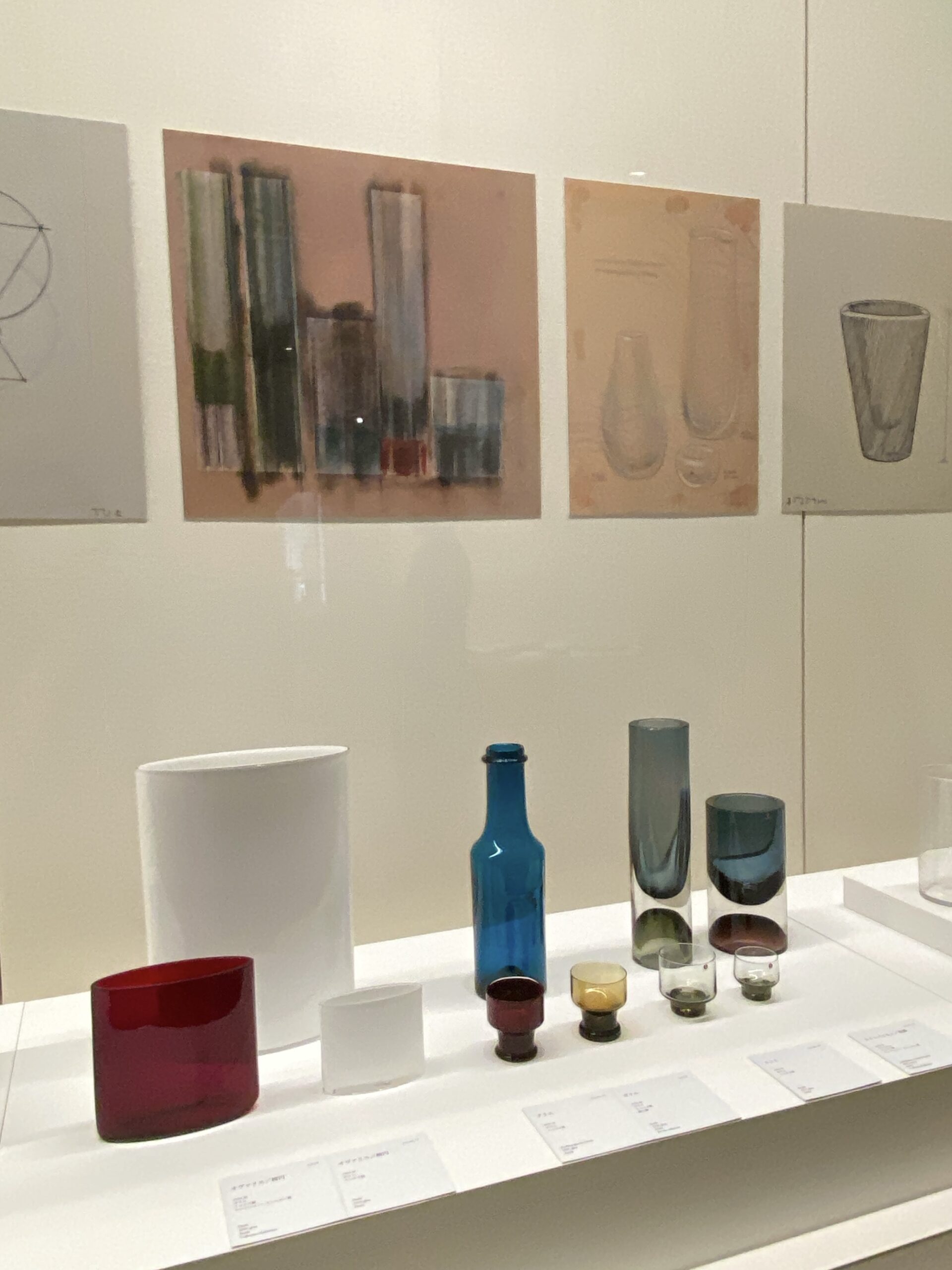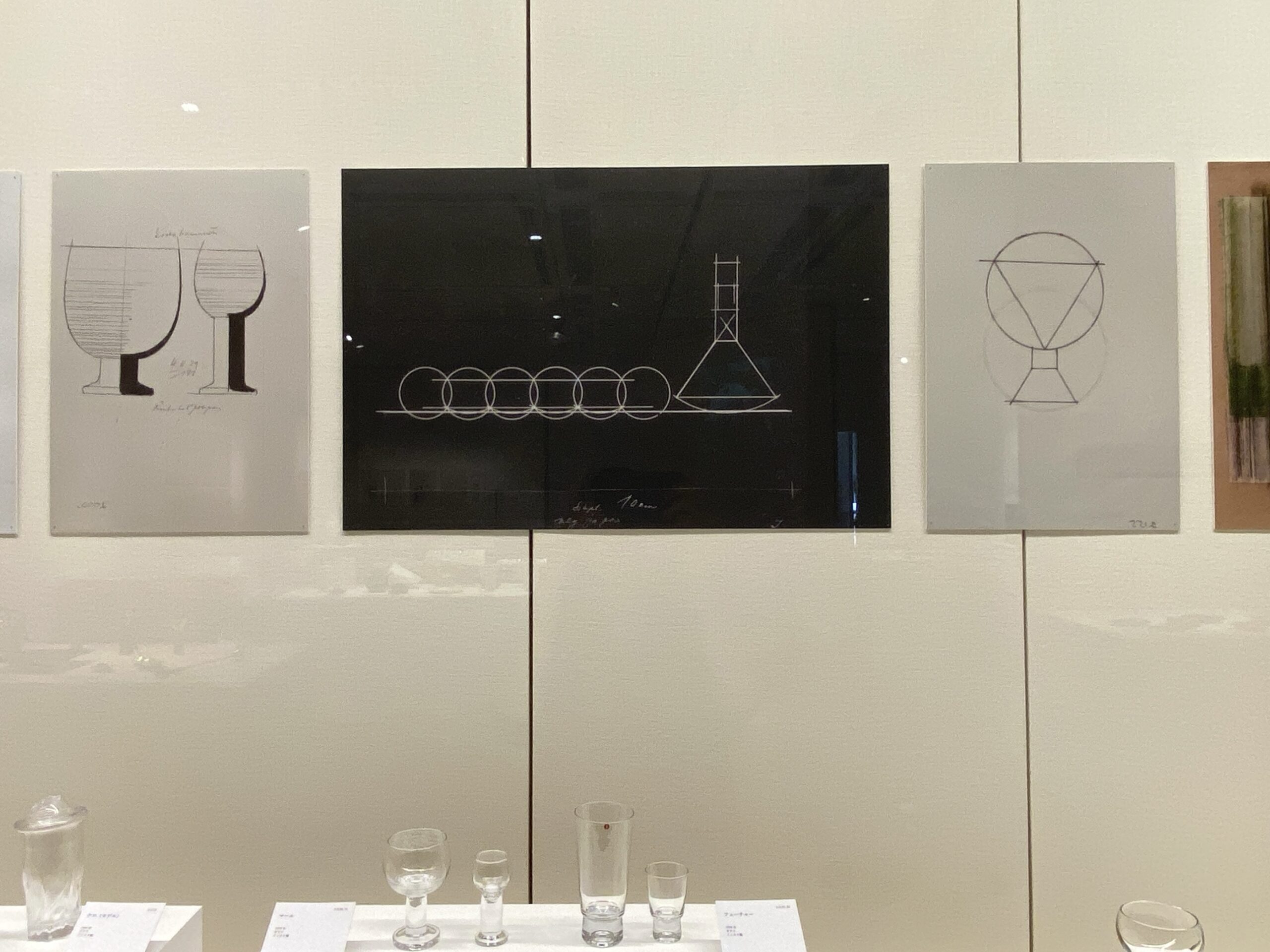 会場には、代表的なガラス作品はもちろん、スケッチやグラフィック、パッケージデザインまで幅広く展示されていて、ひとつひとつをじっくり眺めながら楽しみました。