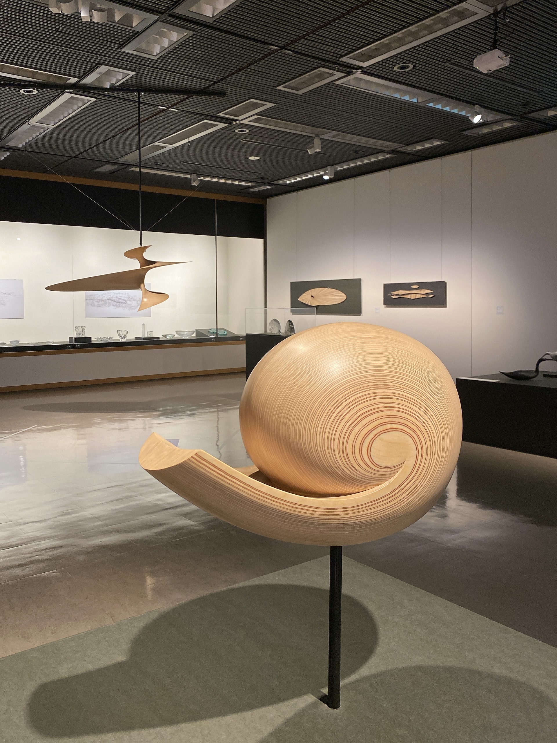 展示の中で特に印象的だったのは、積層合板の作品。表面には、何層にも重ねた木の模様がうっすらと現れていて、それがまるで木の年輪のようにも見えました。