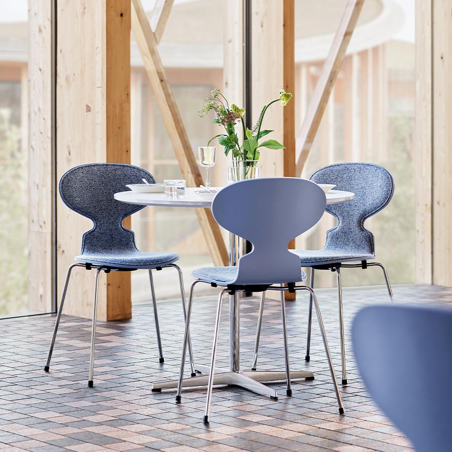 セブンチェアやアントチェアをはじめとした、様々な椅子との相性が良い名作テーブル。