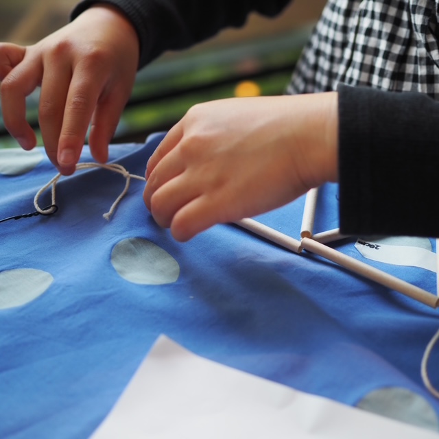 ここは両手を使ってする作業なので、慣れるまでは大人でもむずかしいところです。ワークショップではサポートしながら一緒につくりましたが、ご家庭でもあーでもない、こーでもないとおしゃべりしながら親子で一緒に作る、楽しくて貴重な時間になりそうですね。