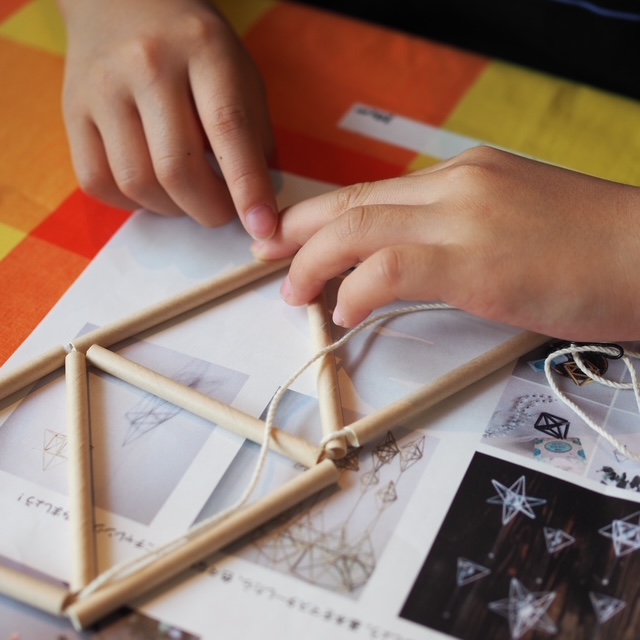 5月5日子供の日に、フィンランドの伝統的な装飾品 『ヒンメリ』 正八面体をつくるKIDSワークショップを開催しました。