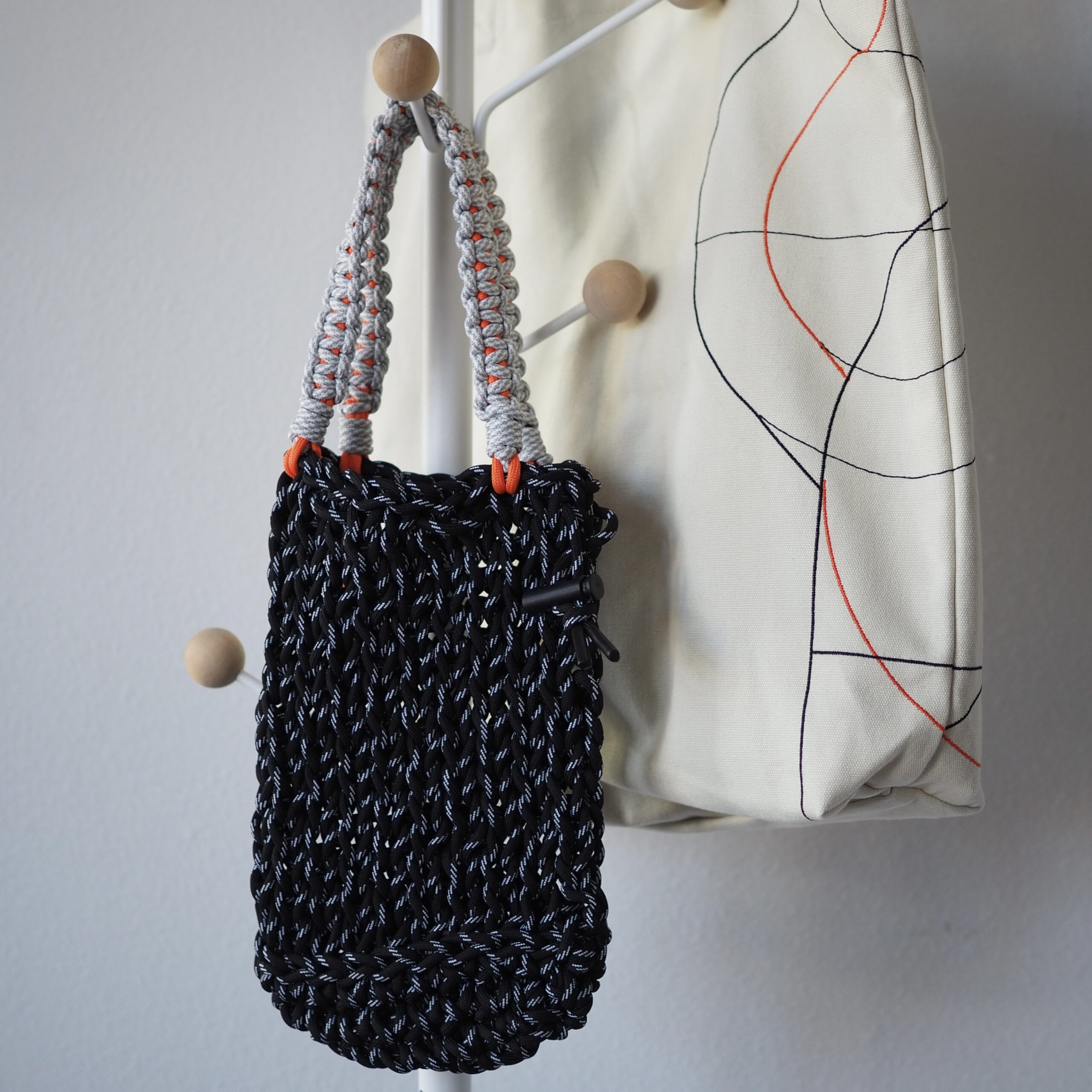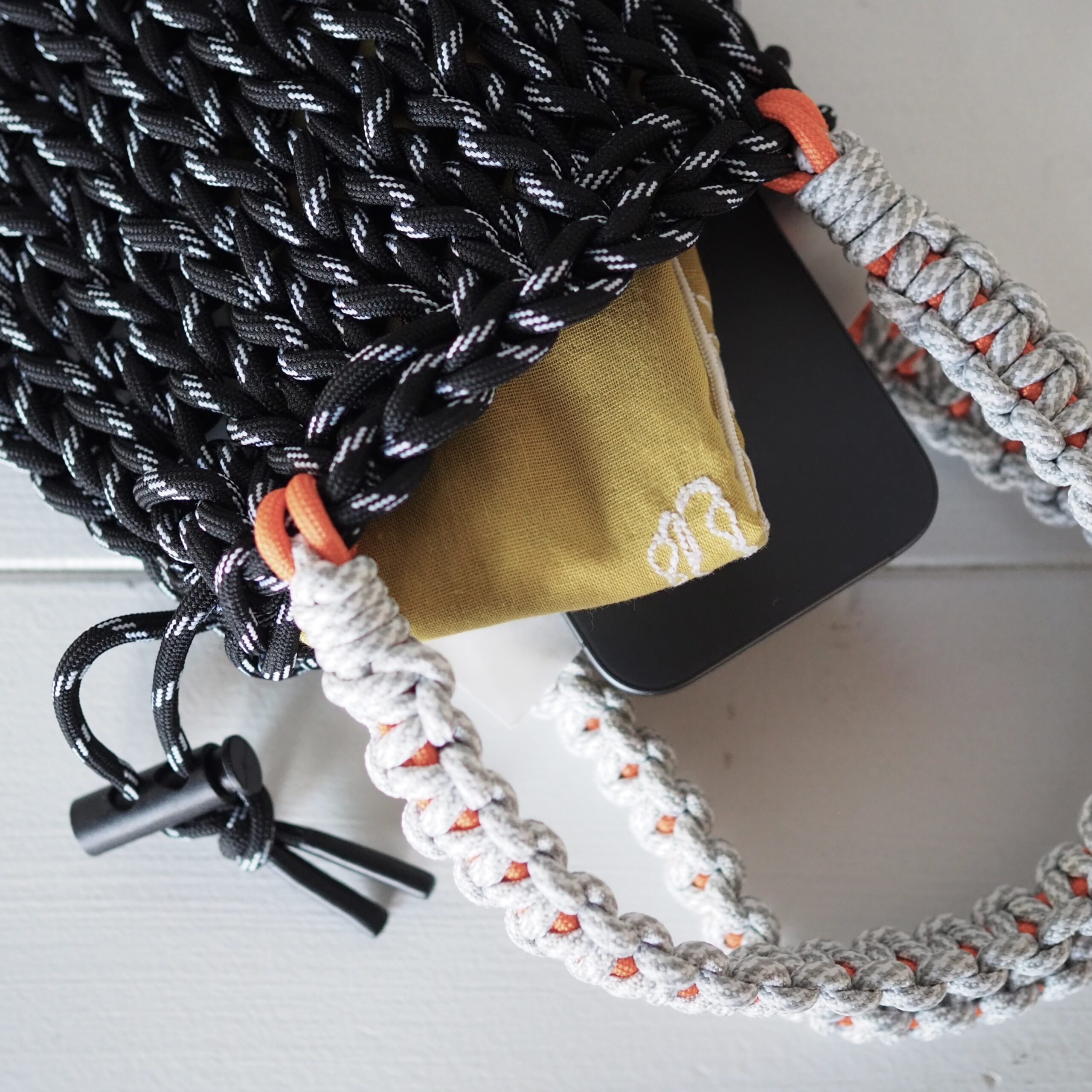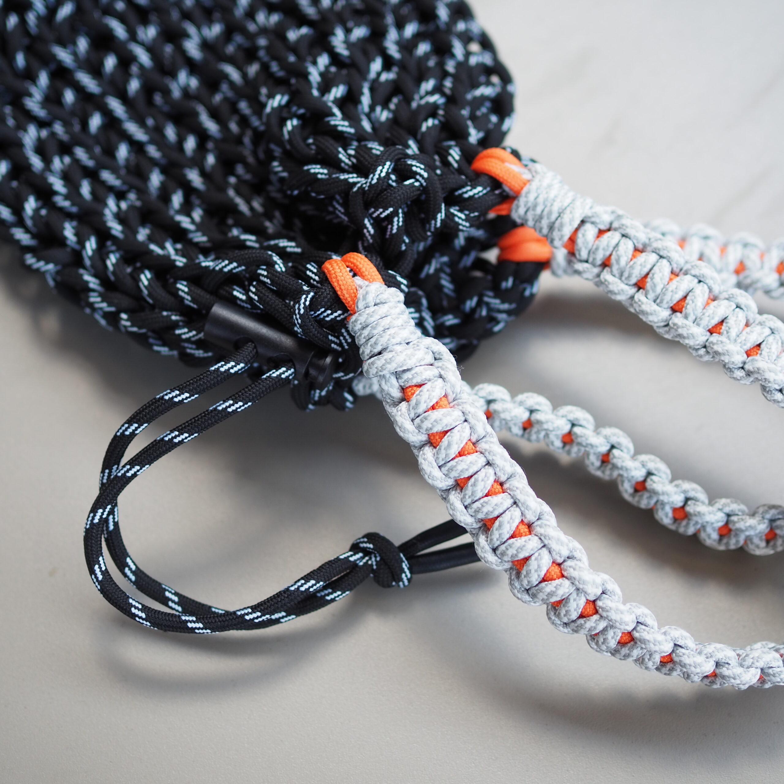 ミックスカラーの丈夫なコードを用いて一つひとつ手で編み上げられており、機械には出せない温かみのある表情が特徴です。