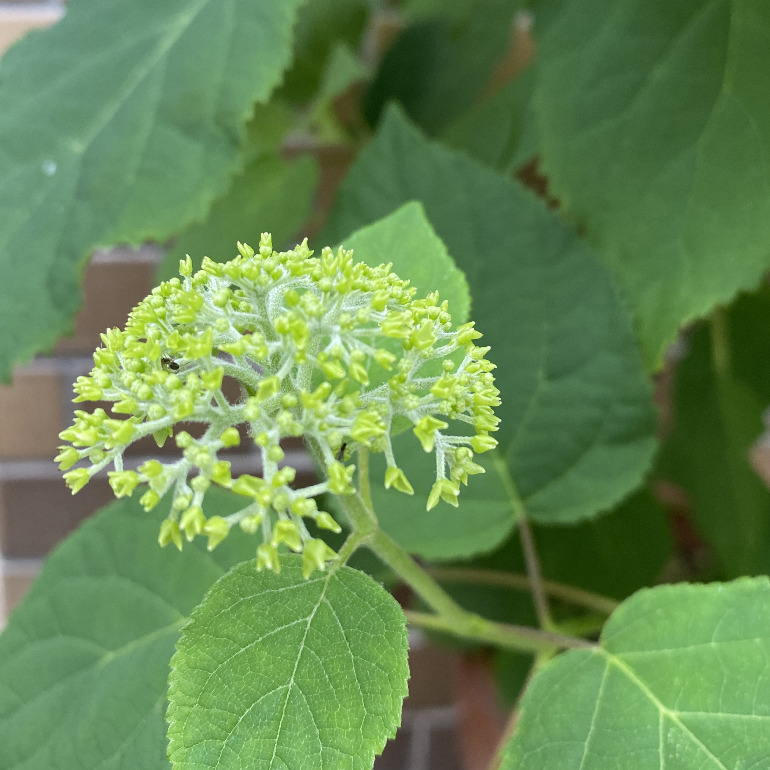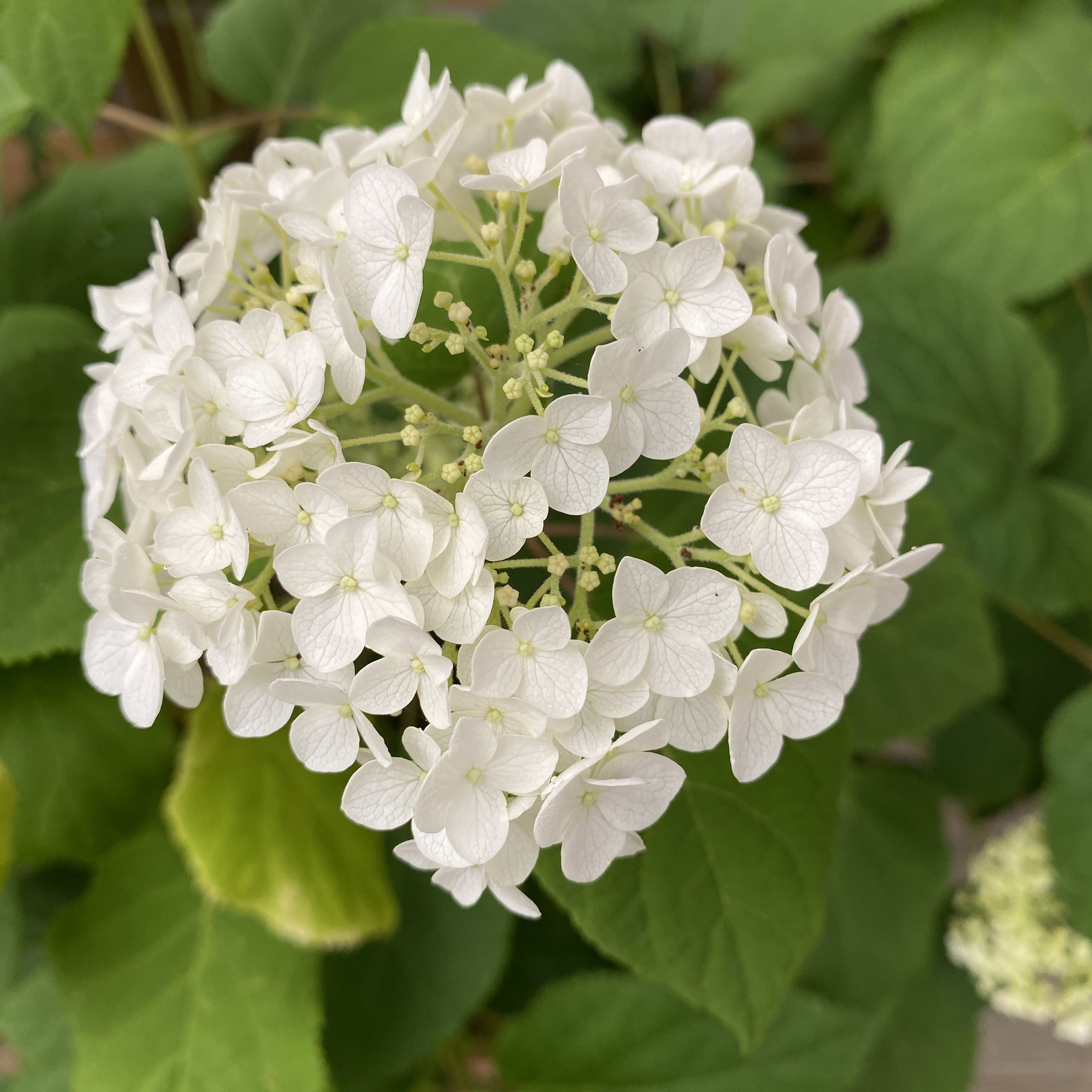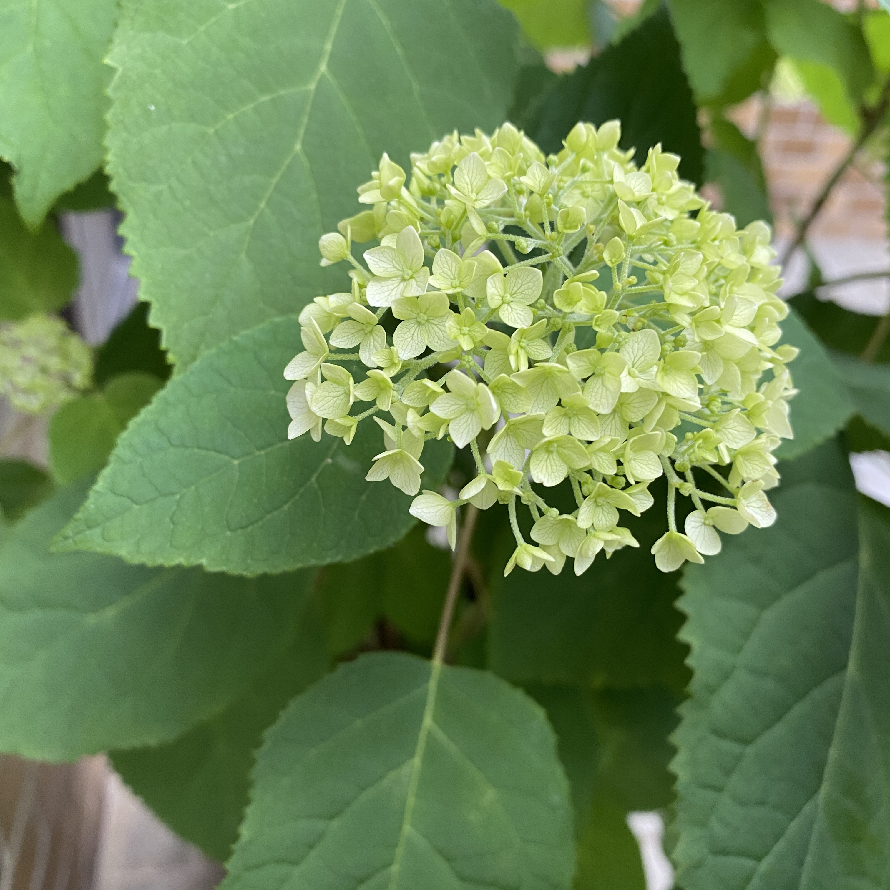 先日、お客様からいただいた鉢植えのアナベルが、美しく咲き始めました。