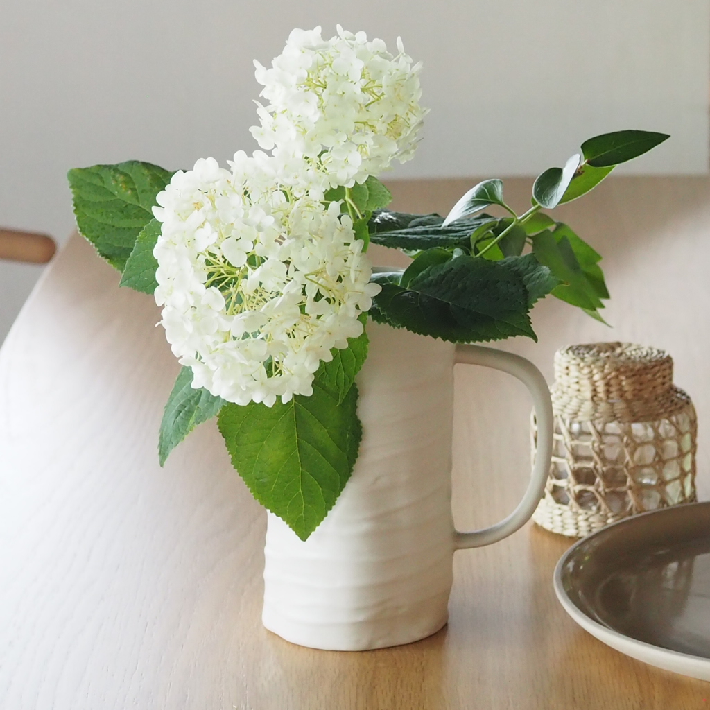 鉢植えのままでも楽しめますが、白いアナベルが見られる期間は限られているため、切り花にして室内で楽しむのもおすすめです。