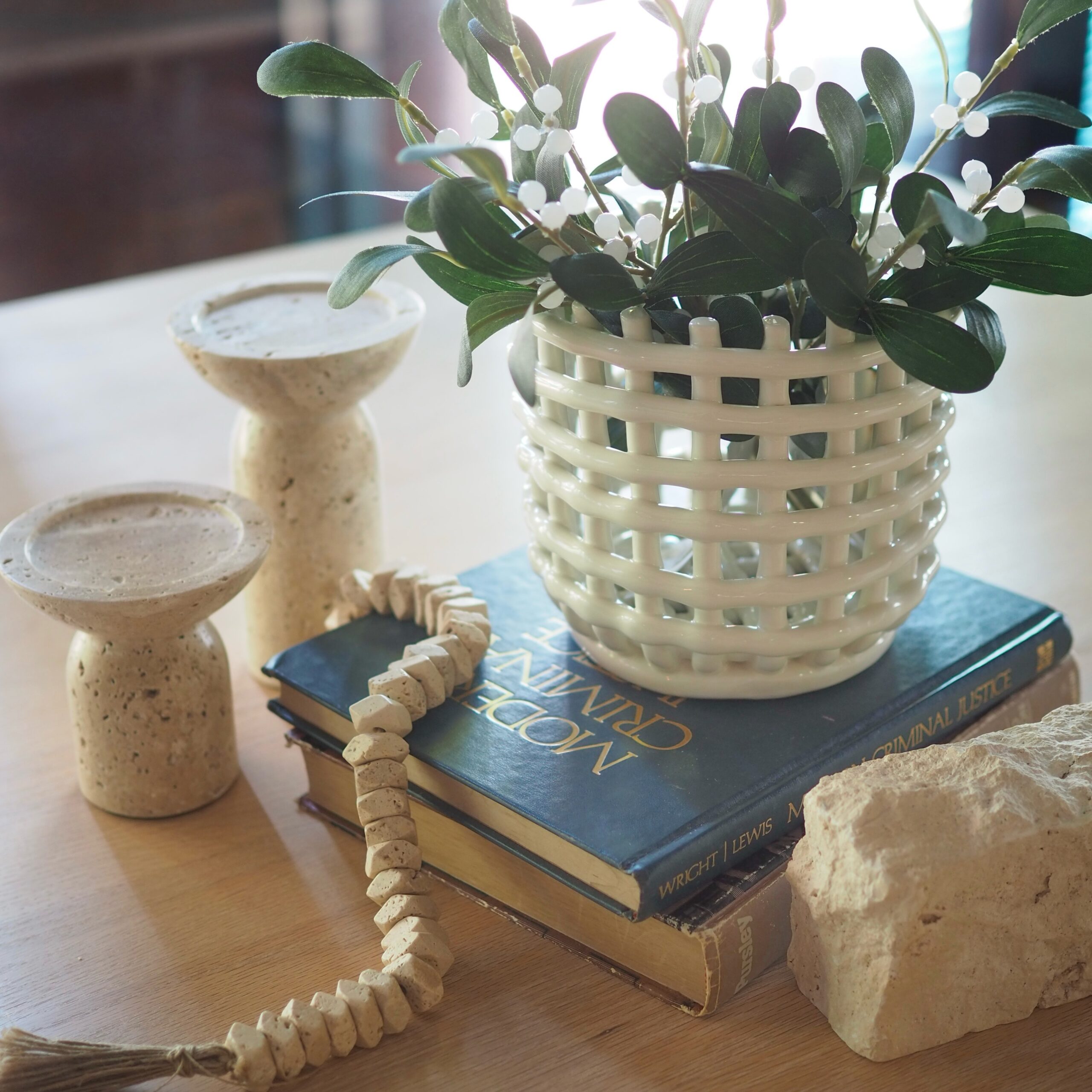 伝統的なバスケットの編み方を陶器に取り入れたハンドメイドのプロダクトです。