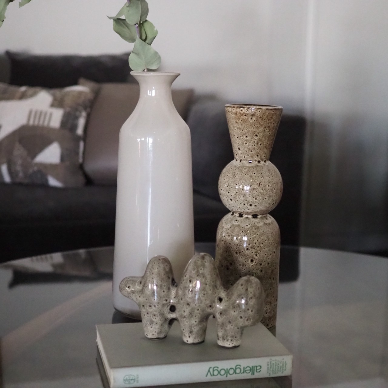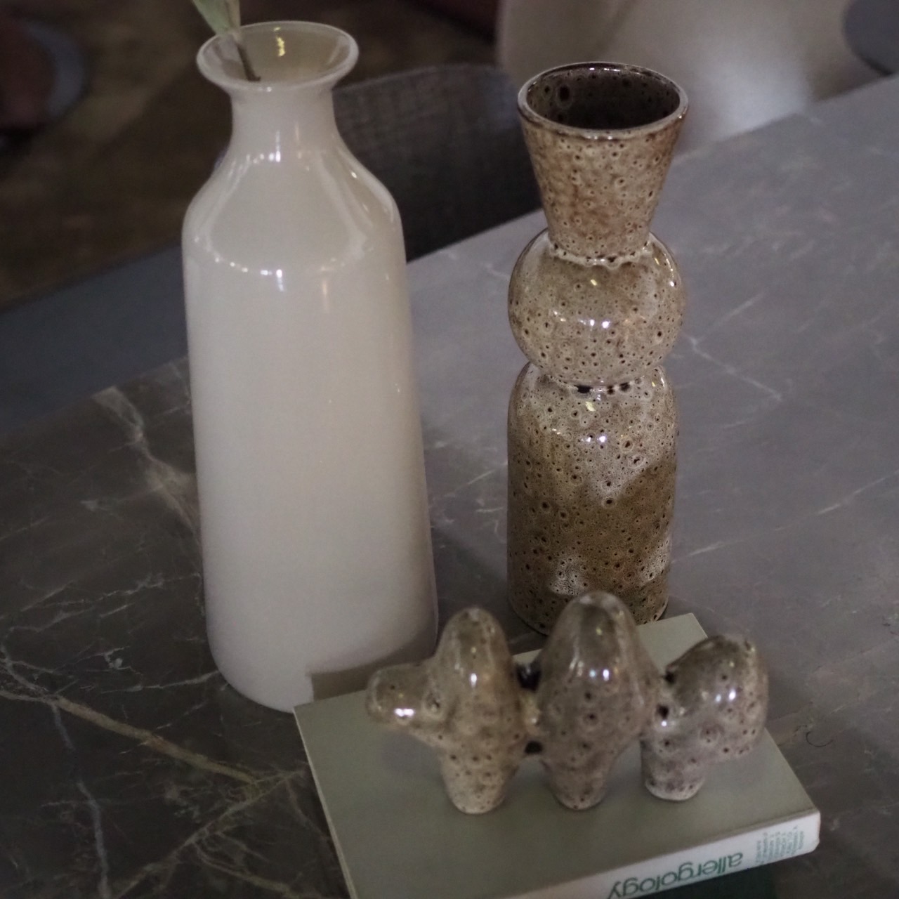 凹凸感があり多孔質な風合いと、洗練されたモダンなフォルムが特徴的なオブジェ&フラワーベース。
