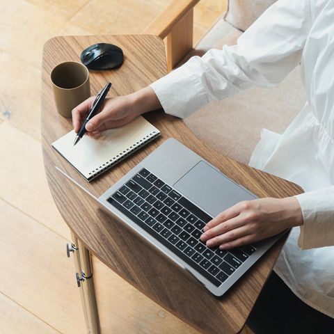 天板が横に長いためノートパソコン置いてもマウスや、資料を置くスペースを確保出来るので、リモートワークにもピッタリなサイドテーブルです。