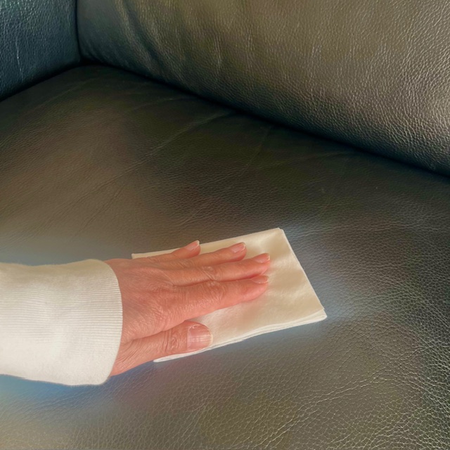 その後柔らかい布(専用クロス)でやさしく乾拭きしてください。強くこすると革の表面を傷つけ、汚れを毛穴の奥に押し込むことになるのでご注意を。