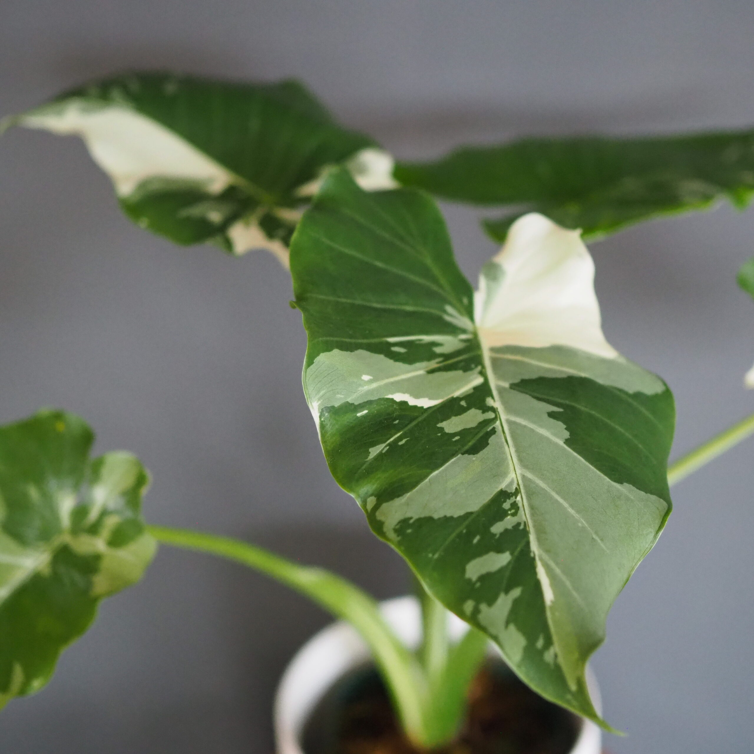 写真のものは斑入りの種類で通常のクワズイモよりも希少価値が高く、