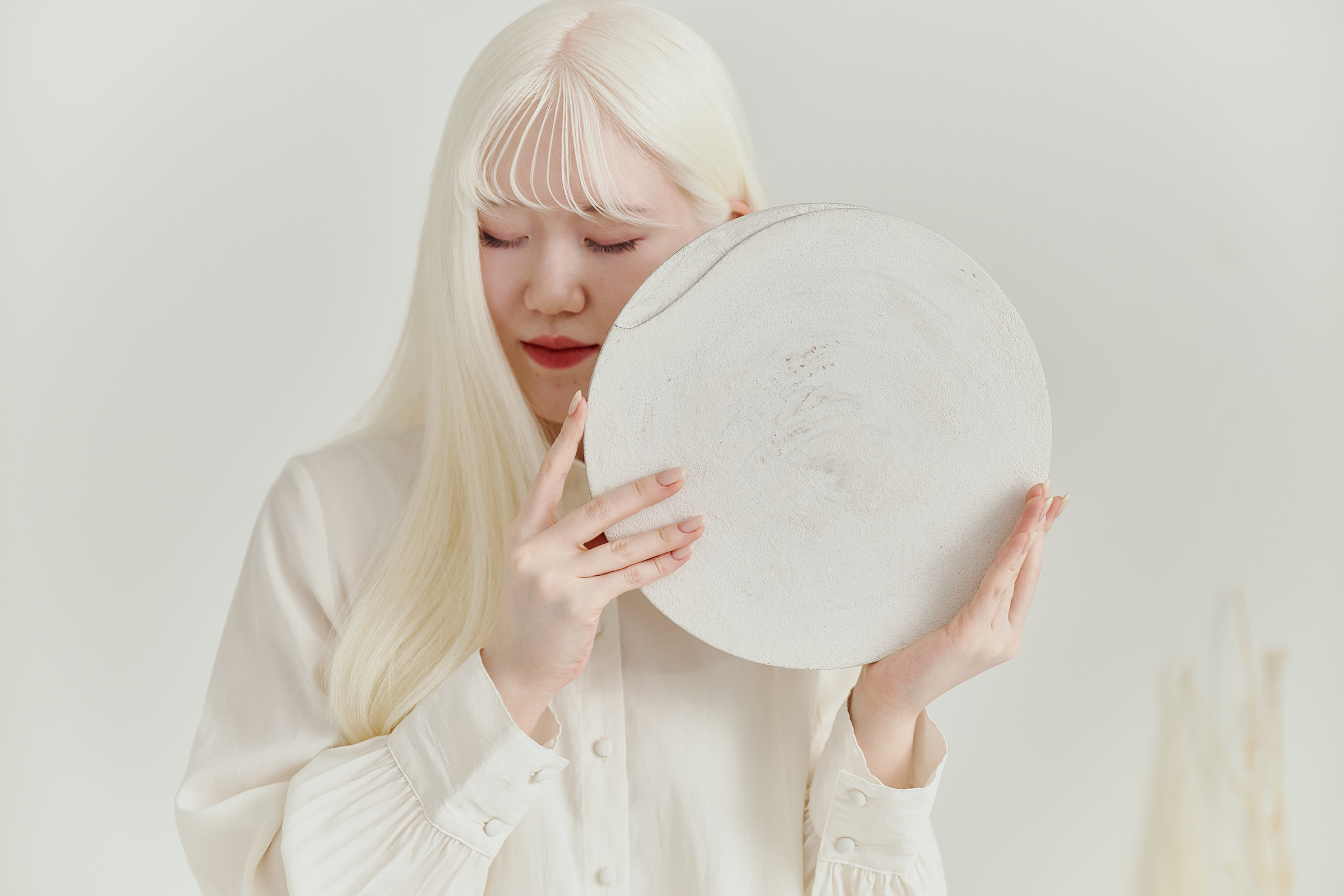 中央から円を描くように研ぎ出された表情が、やわらかな陰影を生み出し、清らかでありながら、どこか温もりを感じる優しい存在です。