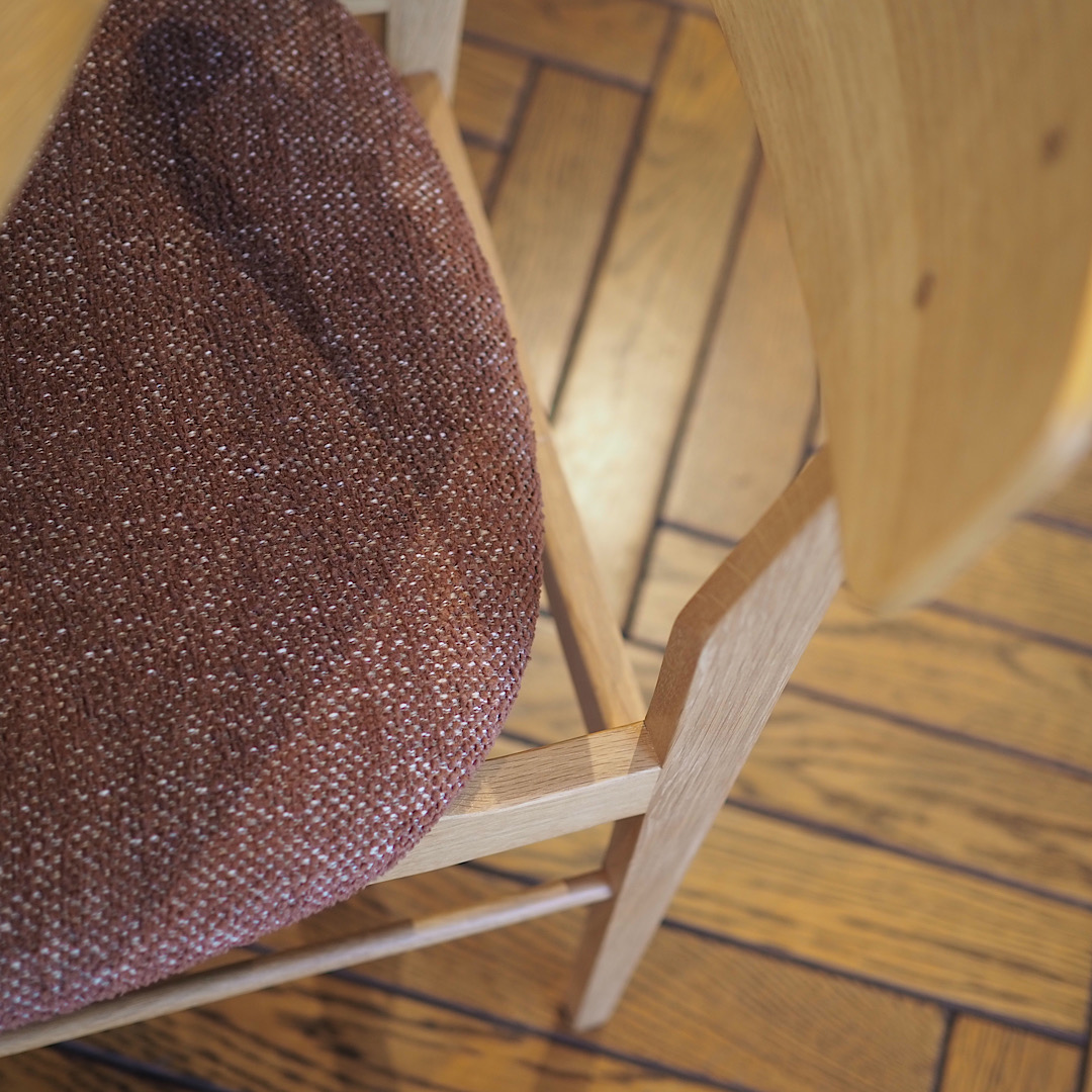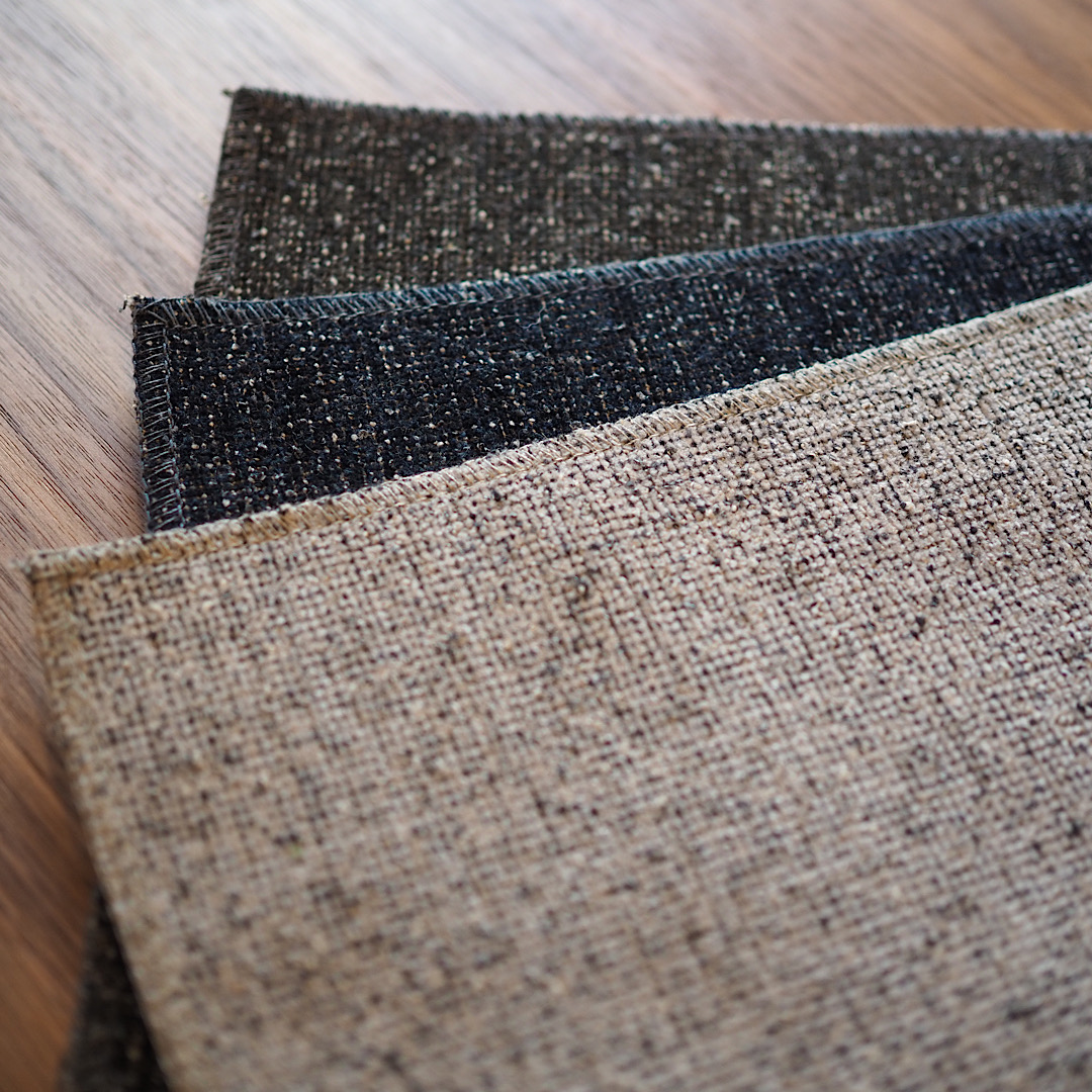 上質な厚みと手触りが特徴の生地。コットン・リネンなどの天然素材も入っているため風合いがよく、ウォールナットとの相性が抜群です。