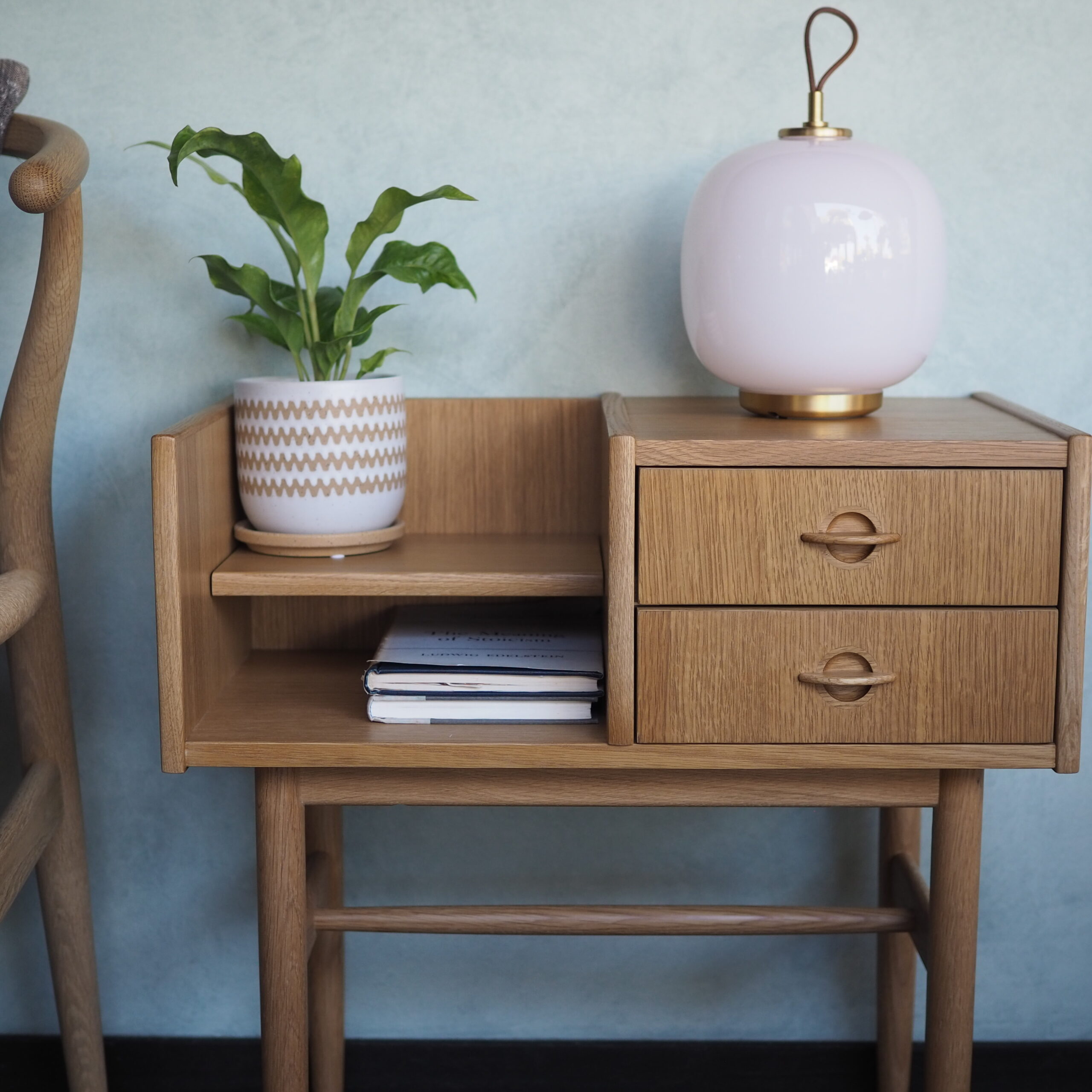 そのシリーズの新しいアイテムであるミニチェストは、左右非対称のデザインが特徴的で、