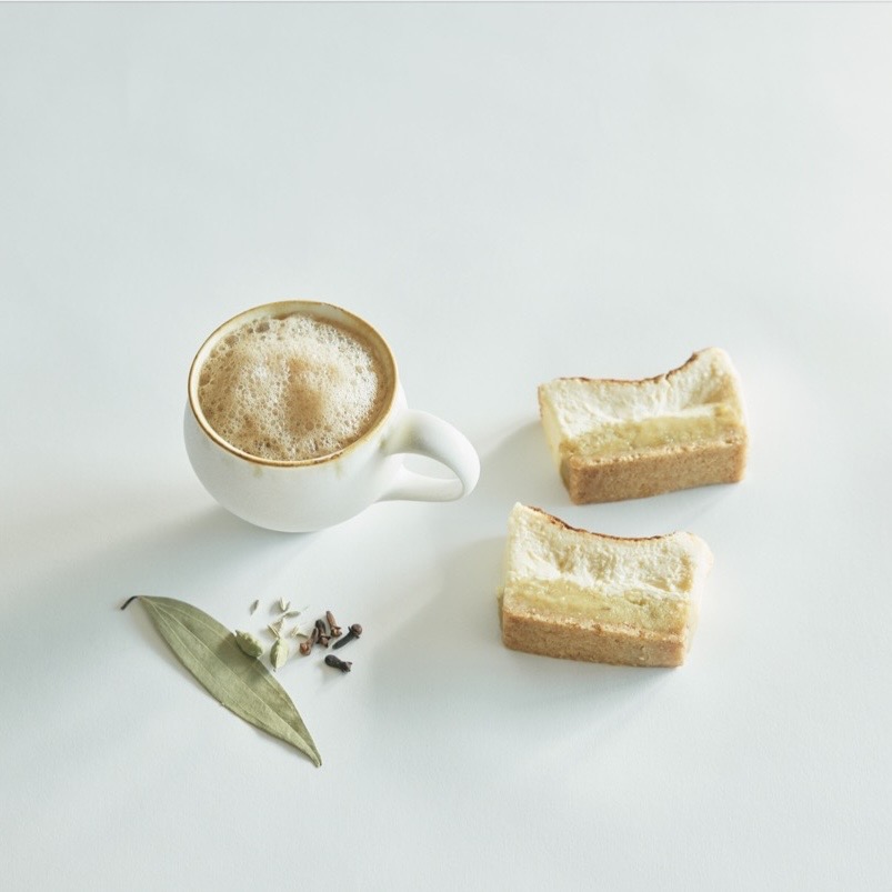 たっぷりのミルクでこだわり茶葉を煮出して、その日に合わせたスパイスやハーブを使ったチャイを出しています。