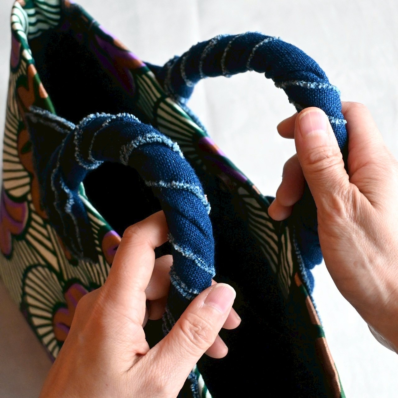 和歌山を拠点に、色彩豊かなアフリカンファブリックを用い、ひとつひとつ丁寧に制作を行うブランド「hanalima works」。