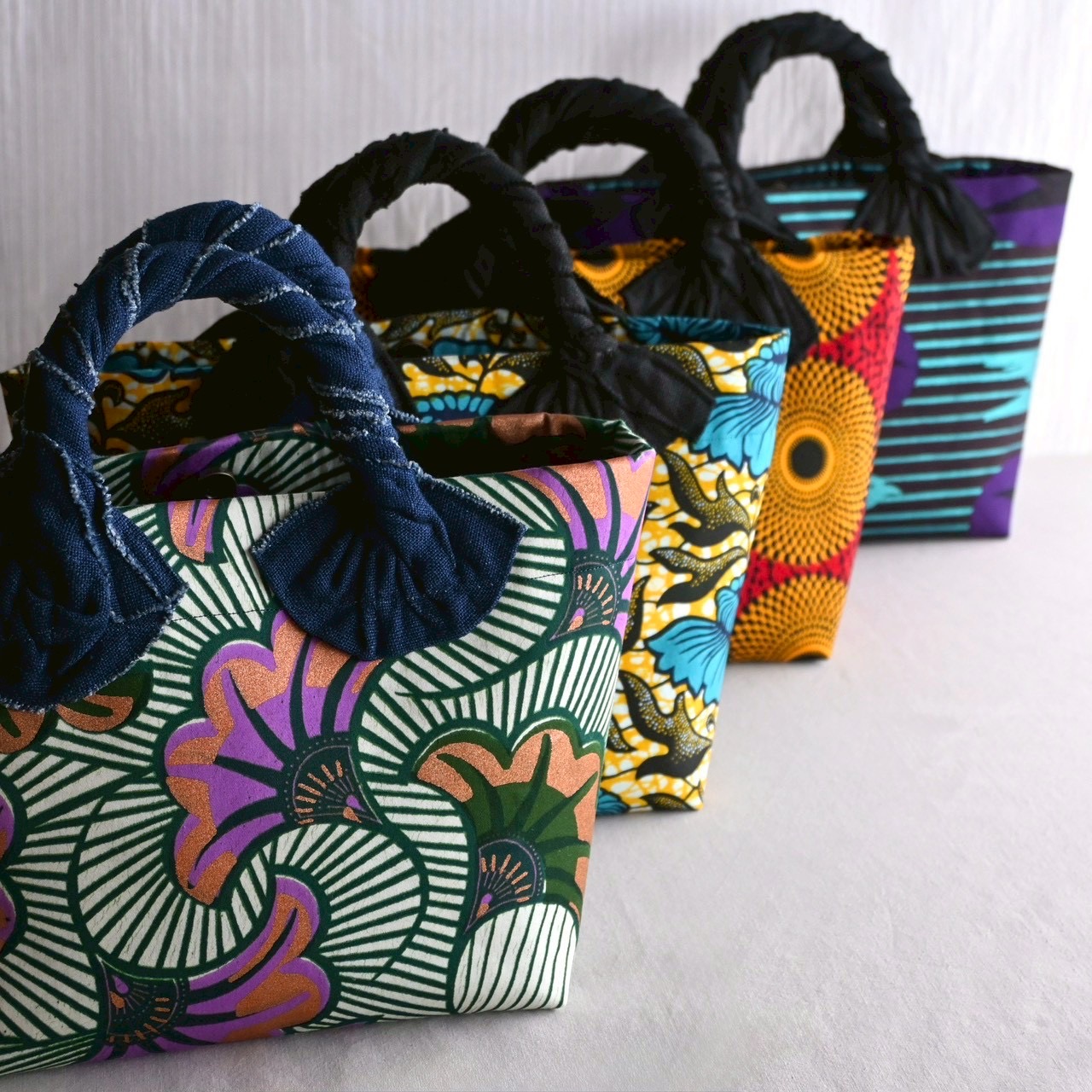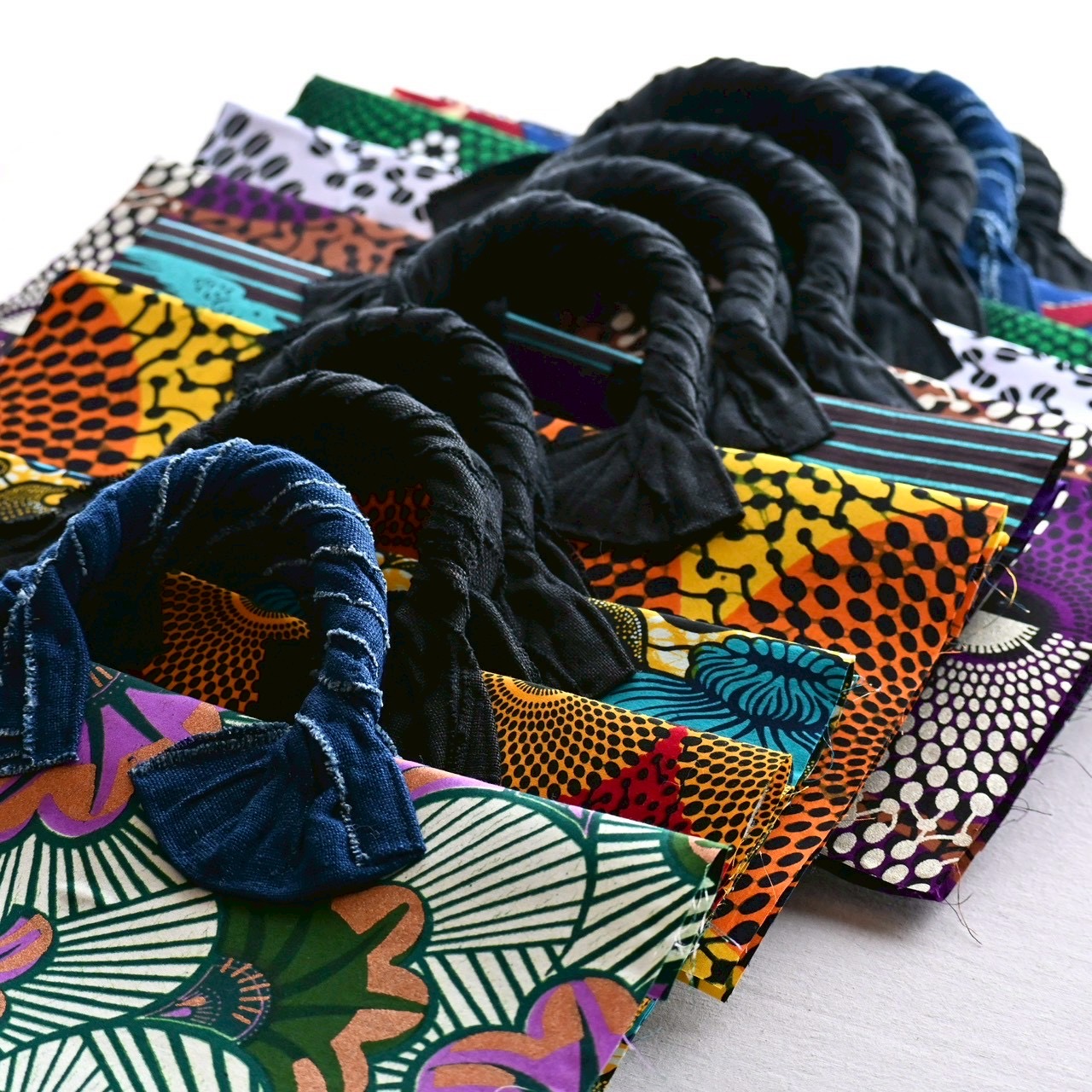 アフリカ布ならではの大胆な柄と力強い色使いを活かした作品は、見る人、使う人の暮らしを鮮やかに彩ります。