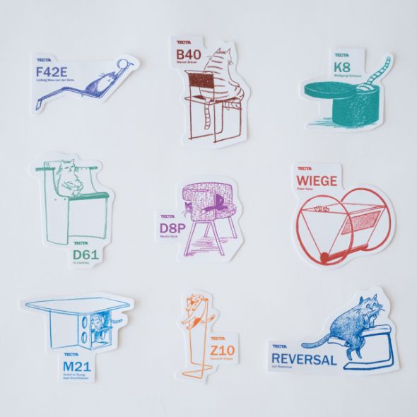 猫とテクタの家具コレクションをイラストにしたオリジナルステッカー(9枚入/3種)